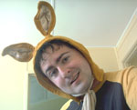 (That's french by the way)Yep, its googie time again. We had easter at our place this year with a bunch of 26-odd mad Italian people joining us for a BBQ lunch and/or a sit-down dinner. Everything went swimmingly with all the cleaning and stuff all week paying off. We even had a visit from the real Easter Bunny! (pictured right) In other news, April Fools day sucks. I hate foolishly getting my hopes up over things that just aren't true. |