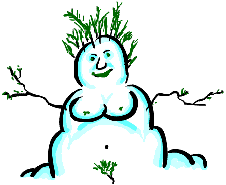 I just got back from a weekend at the snow. We stayed at Gracie's auntie's ski lodge at Dinner Plain, which is about 10 minutes from the Mt. Hotham Resort. This little newspost had potential to be one of those groovy pictorials in my Output section, however some shit-for-brains forgot to bring the digital camera. Oh well. There were only really about five or six things I would have taken pictures of anyway, which brings us to the odd picture you can see to the right there. The one thing that I really wanted to take a picture of was the snow-lady that we built, so much so that I came this close (making small hand gestures) to buying a $30 disposable camera just so I could capture the moment. Unfortunately, you'll have to make do with the crude diagram (Click it for an enlarged version). She was anatomically correct (apart form the whole no-legs thing, but hey, you can't be picky with snow-people), had a top set of norgs, and... well... we named her Barbara Bush.
