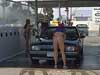 Watching the girls work, we found out two things: 1) If you have a camera with you, the girls put on more of a show, and 2) If you tip them, they sometimes take their tops off. "Bugger that! Why should they have all the fun?" we said, as we ran to the car. We hoped for either the middle or the right bay, but we got ushered into the one on the left. "Hey fellas, you wanna get wet and wild with us? The car wash is $15, but the wet and wild is free".
