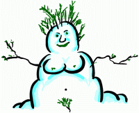 I just got back from a weekend at the snow. We stayed at Gracie's auntie's ski lodge at Dinner Plain, which is about 10 minutes from the Mt. Hotham Resort. This little newspost had potential to be one of those groovy pictorials in my Output section, however some shit-for-brains forgot to bring the digital camera. Oh well. There were only really about five or six things I would have taken pictures of anyway, which brings us to the odd picture you can see to the right there. The one thing that I really wanted to take a picture of was the snow-lady that we built, so much so that I came this close (making small hand gestures) to buying a $30 disposable camera just so I could capture the moment. Unfortunately, you'll have to make do with the crude diagram (Click it for an enlarged version). She was anatomically correct (apart form the whole no-legs thing, but hey, you can't be picky with snow-people), had a top set of norgs, and... well... we named her Barbara Bush.