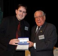 Me, accepting my award from Mr. Don McPherson | Oh yeah, and Saturday was the 2001 McPherson Media Group Annual Awards Night, and from ALL of the THOUSANDS of other web developers in the company I picked up the award for "Website of the Year 2001" for my work on the Taco Bill website. I also won the award last year for my work on the Flash intro to the Australian Airbrush Art website. I got a framed certificate and a nice boxed pen with "Website of the Year 2001 - Michael McCorry Taco Bill" written on it. Still with me? Good... Hmmm... what else has been occupying my time... Hmmm... Well games-wise, I've been playing Monkey Island 4 on the PC and Grandia 2 on the DC. I've also been toying with M.U.G.E.N. which, for those who don't know, is a kick-ass, free vs-fighting game engine which allows you to download from a selection of hundreds of characters and background stages to form your own super fighter megamix. Mine's looking at having about 156 characters now, with about twice as many backgrounds. I'm currently filling in the gaps with missing characters, while searching for the right music to accompany the many, many stages. I tell ya, it's gonna be kick ass. Mail me for more info if you want it. It think I'll wrap this up now. My intention is to inform, not bore, so I'll leave you with a little news that my domain name comes up for renewal in January 2002, so I'll be planning a complete revamp of the website in time with that. Also, I've found a good use for my AYBABTU.org domain. What, exactly? You'll have to wait and see. |