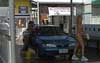 Watching the girls work, we found out two things: 1) If you have a camera with you, the girls put on more of a show, and 2) If you tip them, they sometimes take their tops off. "Bugger that! Why should they have all the fun?" we said, as we ran to the car. We hoped for either the middle or the right bay, but we got ushered into the one on the left. "Hey fellas, you wanna get wet and wild with us? The car wash is $15, but the wet and wild is free".
