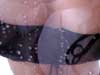 G-string chick show us what she can do with big squirty things. |