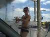 I really don't think that it's the most effective way to wash the windscreen... I mean, whenever I try this method I end up with all sorts of smears... |
